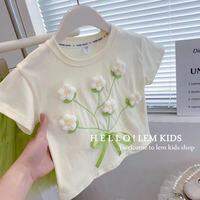 Áo Thun Cotton Hoa Cho Bé Gái Mùa Hè 2023 Áo Thun Cotton Nguyên Chất in Họa Tiết Hoa Áo Thun Trẻ Em Thời Trang Mùa Hè Áo Thun Cổ Tròn