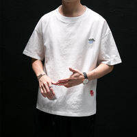 Áo Thun Tay Ngắn Vải Lanh Thêu Trắng Mỏng Rộng Rãi Thời Trang Mùa Hè Cho Nam Phong Cách Trung Hoa Cổ Tròn Thường Ngày